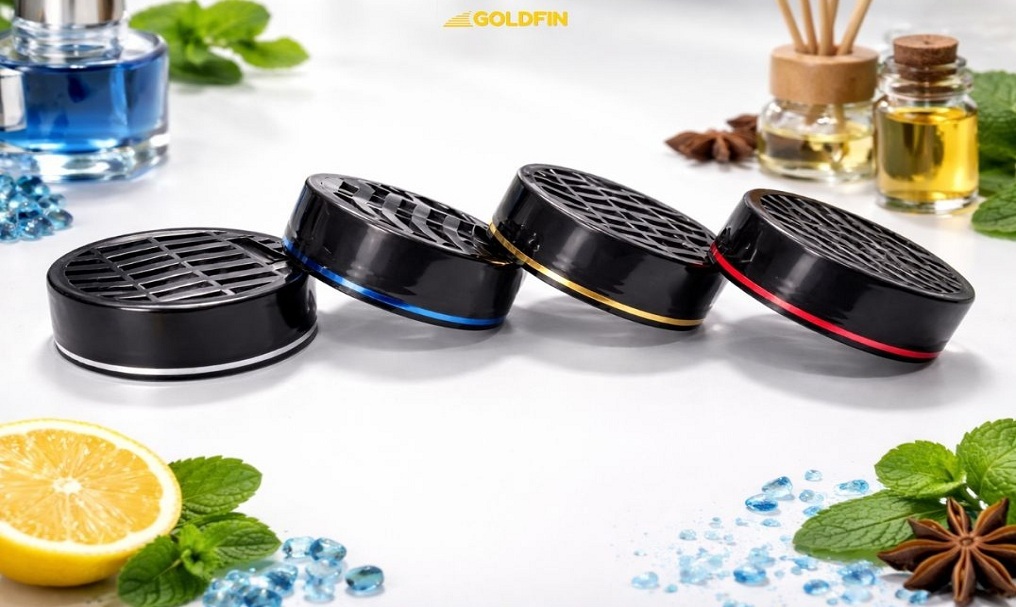 The cap transforms into a visually striking component with elegant metallic detailing, giving the product a luxurious finish and strong shelf presence.