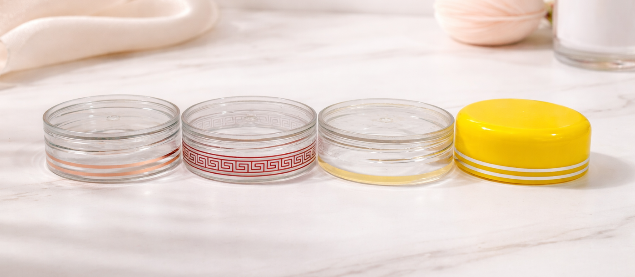 We offer full foiling on all caps from 15 diameter to 115 diameter. Example: jar caps, compact powder caps, nail polish caps etc.
