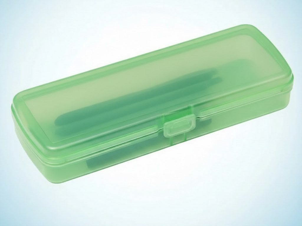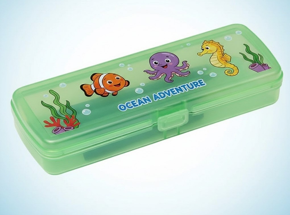 Before stamping, the pencil box has a plain, printed surface that serves its basic purpose but lacks visual impact.